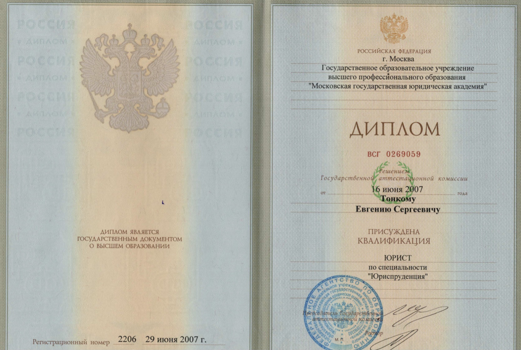 - Московская Государственная Юридическая Академия им. О.Е. Кутафина (МГЮА) по специальности юриспруденция (2007г.).